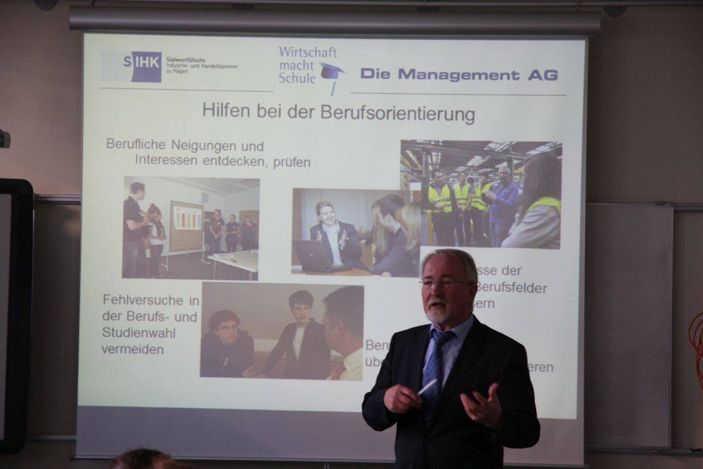 Danke an die SIHK, die unseren Schülerinnen und Schülern des Wirtschaftsgymasiums erneut die Teilnahme an der Management-AG ermöglichte. Herr Martensen (Oberstufenleiter) sowie Herr Reuter (Projektverantwortlicher bei der SIHK) freuen sich über die zahlreichen freiwilligen Teilnehmerinnen und Teilnehmer, die tolle Eindrücke in zahlreiche Unternehmen der Region gewinnen konnten und die zudem ihre Bewerbungen um ein wertvolles Zertifikat erweitern können.