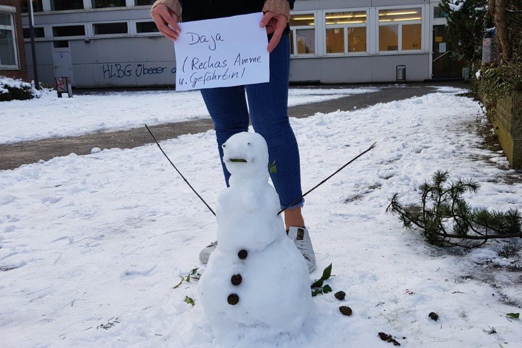 Der Deutsch-Grundkurs der Stufe 12 (G12A) hat das Wetter und insbesondere den Schneefall in diesem Winter genutzt, um die Figurenkonstellation von Gotthold Ephraim Lessings dramatischem Gedicht "Nathan der Weise" mittels Schnee-Standbildern darzustellen.
