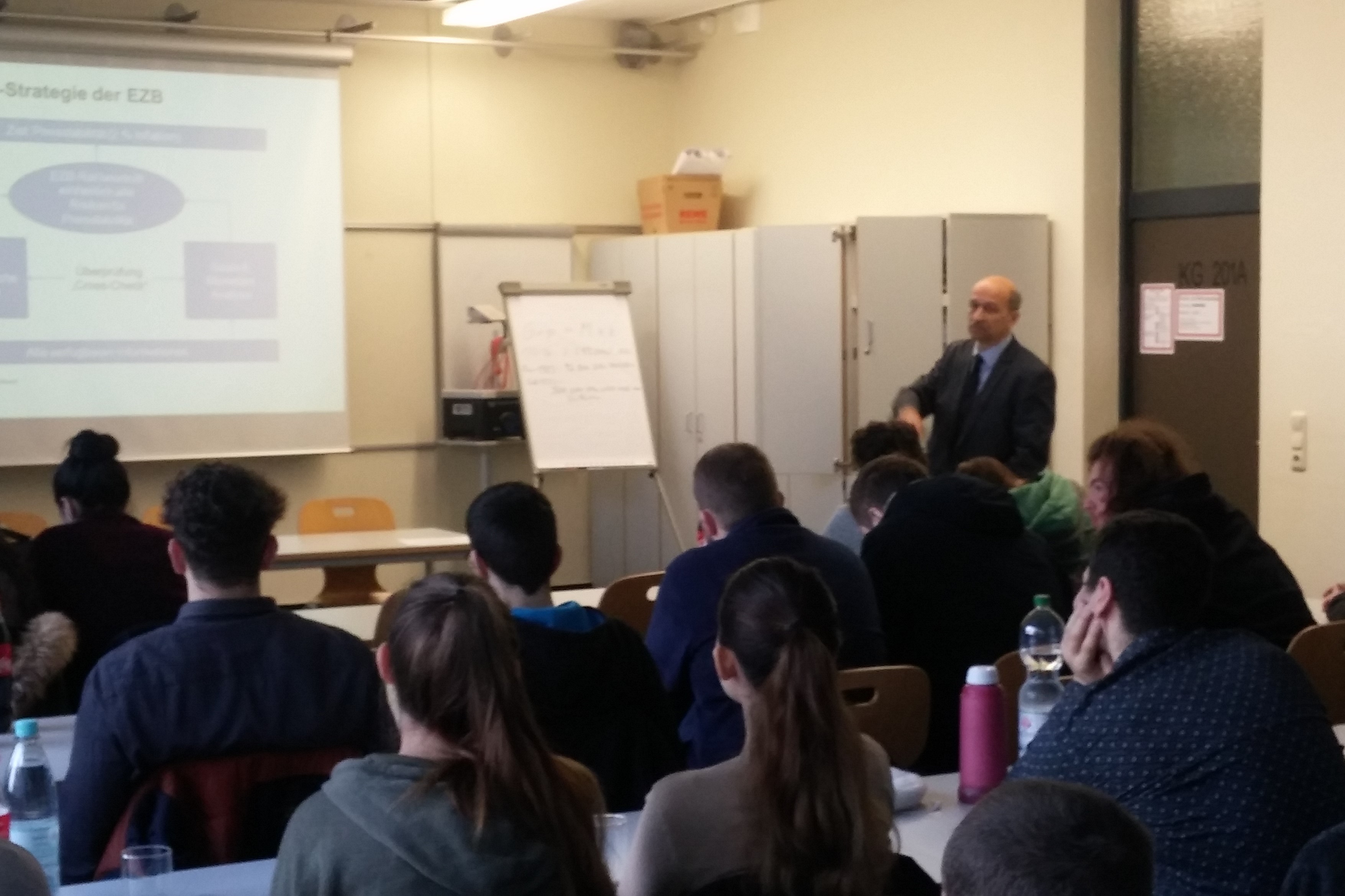 Am 1. Februar 2018 referierte der stellvertretende Leiter der Filiale Dortmund der Deutschen Bundesbank, Bernd Martin, in den Klassen G13A und G13B über das Thema „Aktuelle Geldpolitik der Europäischen Zentralbank“. In seinem dreistündigen Vortrag an der K2 ermöglichte Herr Martin den Schülerinnen und Schülern der Jahrgangsstufe 13 des Wirtschaftsgymnasiums einen interessanten Einblick in die Instrumente und die Wirkungsweise der Geldpolitik der Europäischen Zentralbank.