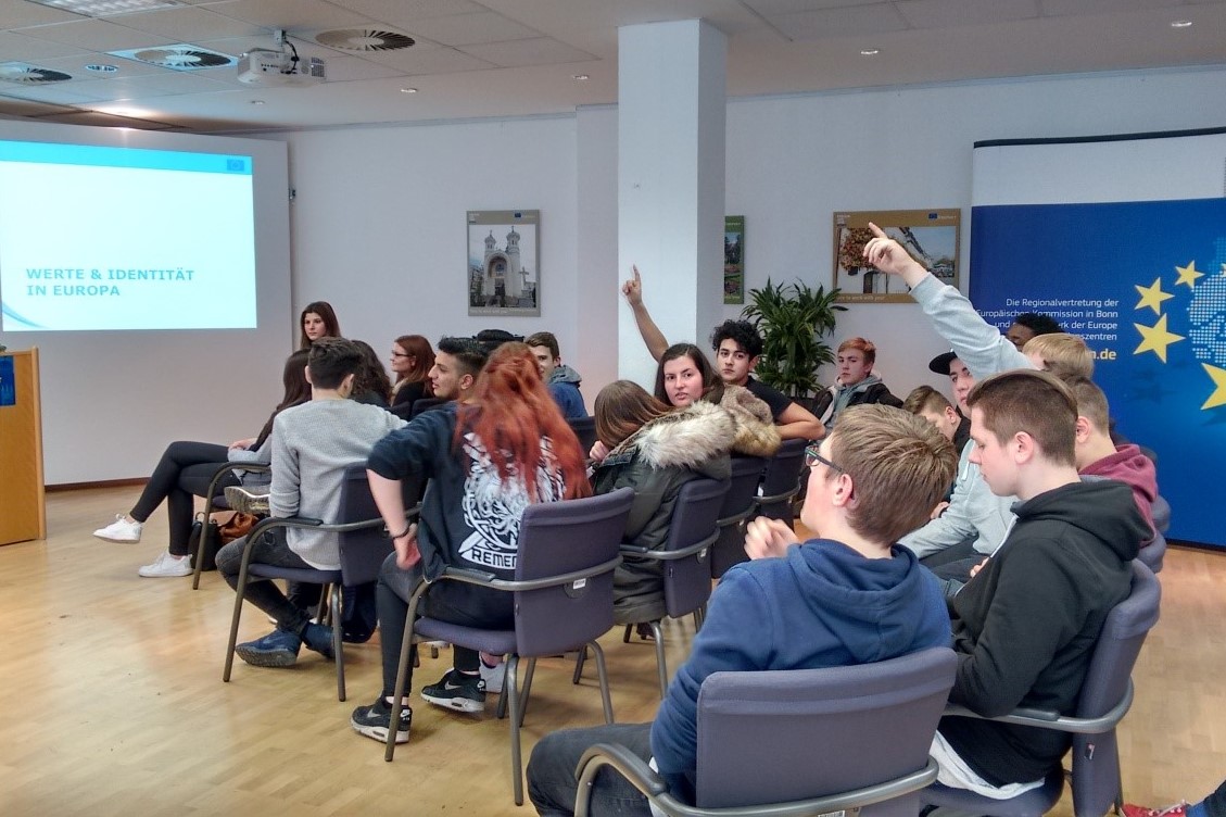 Am Mittwochnachmittag, den 10. Mai, machte sich die G11b auf den Weg in den Ratssaal der Stadt Hagen, um sich im Wettbewerb gegen drei andere Klassen dieser Frage zu stellen. Zu der Veranstaltung hatte das EUROPE DIRECT Büro eingeladen.